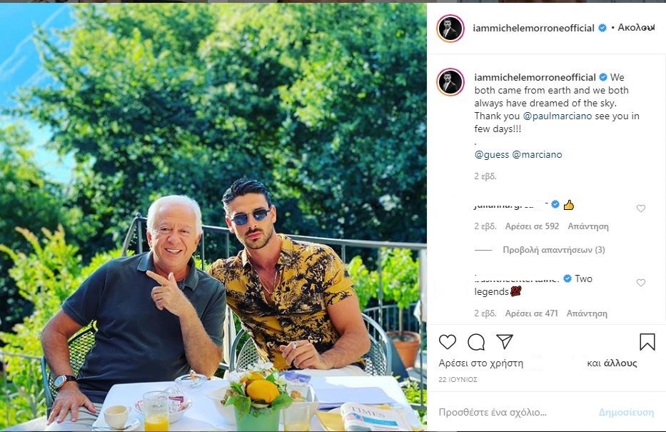 Παγκόσμια αναγνωρισιμότητα του χάρισε η ταινία “365 Dni” και του άνοιξε πόρτες. Έτσι ο 29χρονος πρωταγωνιστής, Μικέλε Μορόνε, βλέπει το όνομά του να καθιερώνεται και να του δίνει πολλές επαγγελματικές ευκαιρίες. Μία από αυτές είναι συμφωνία συνεργασίας με τον Paul Marciano και την «Guess by Marciano». Την προηγούμενη εβδομάδα ο Μικέλε βρέθηκε στην έπαυλη του Marciano στην Ελβετία, όπου υπέγραψαν τη συμφωνία, βάσει της οποίας θα παρουσιάσει τα ρούχα της εταιρείας και θα συμμετάσχει στην καλοκαιρινή της καμπάνια. Τα γυρίσματα θα ξεκινήσουν την ερχόμενη εβδομάδα σε μία βίλα στη λίμνη Κόμο της Ιταλίας. Σύμφωνα με το ΤΜΖ, η συμφωνία περιλαμβάνει «φωτογραφίσεις, αναρτήσεις στα μέσα κοινωνικής δικτύωσης, δημόσιες εμφανίσεις και ίσως μία παρουσίαση σε ντεφιλέ».