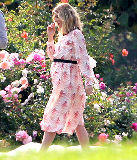 H κοιλιά της διαγράφεται ολοκάθαρα, μην αφήνοντας περιθώρια για αμφιβολίες – και το υπέροχο φόρεμα με τη μαύρη ζώνη, που έχει μπει στο κατάλληλο σημείο, βοηθάει πολύ.Η φωτογράφηση έγινε στους κήπους Huntington Library στο San Marino -μια πανέμορφη τοποθεσία, γεμάτη χρώμα, ανθισμένα λουλούδια και αναμονή ζωής.