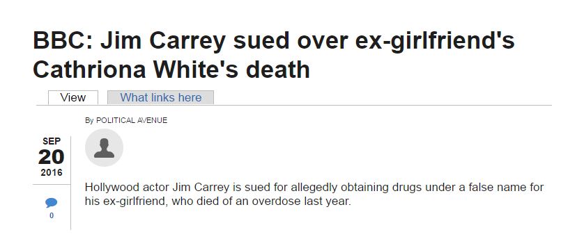 Μήνυση στον γνωστό ηθοποιό Τζιμ Κάρεϊ υπέβαλε ο εν διαστάσει σύζυγος της πρώην φίλης του, η οποία πέθανε από υπερβολική δόση φαρμάκων το περασμένο έτος.