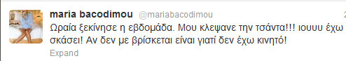 Θύμα ληστών έπεσε και η παρουσιάστρια Μαρία Μπακοδήμου…Το αποκάλυψε στο twitter της πριν απο λίγο…