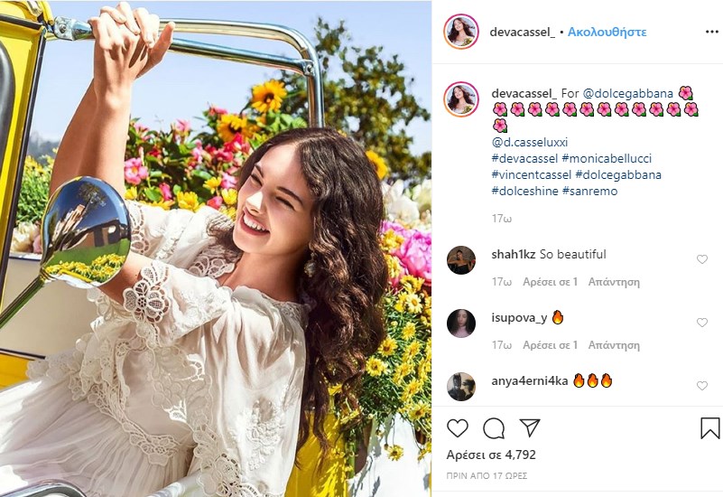 Ήδη βαδίζει στα χνάρια της μητέρας της και είναι η νέα μούσα των Dolce & Gabbana. Η πανέμορφη Ντεβά είναι γεννημένη το 2004 και τα ιταλικά ΜΜΕ μιλούν για έναν… κλώνο της Μόνικα.