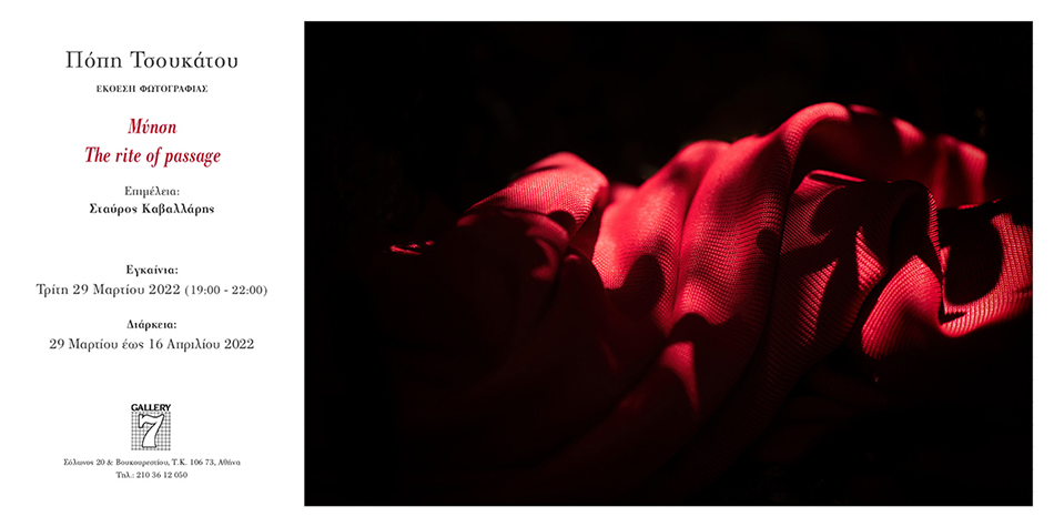 Σύμβολα και συμβολισμοί αποτελούν τα κύρια χαρακτηριστικά γραφής στην καινούργια δουλειά της Πόπης Τσουκάτου, μέσα σε μία γενικότερη θεματική φωτογραφικής απεικόνισης των Ελευσινίων Μυστηρίων. Ρόδια, νάρκισσοι, στάχυα αναβιώνουν από το φακό ρεαλιστικά και έντονα, εγείροντας στη μνήμη τον μύθο της Δήμητρας και της Περσεφόνης.