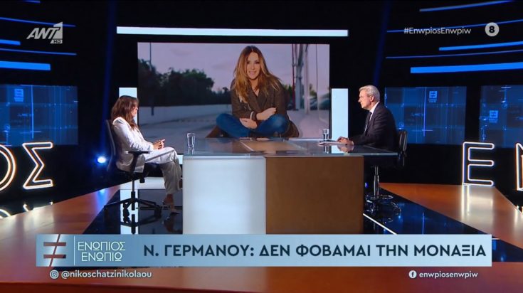 Καλεσμένη στην εκπομπή «Ενώπιος Ενωπίω» με τον Νίκο Χατζηνικολάου βρέθηκε το βράδυ της Πέμπτης η Ναταλία Γερμανού. Η γνωστή παρουσιάστρια άνοιξε την καρδιά της και αναφέρθηκε, μεταξύ άλλων, στο ζήτημα της μοναξιάς, εξηγώντας πώς την βιώνει και τι σημαίνει για εκείνη στην παρούσα φάση της ζωής της.