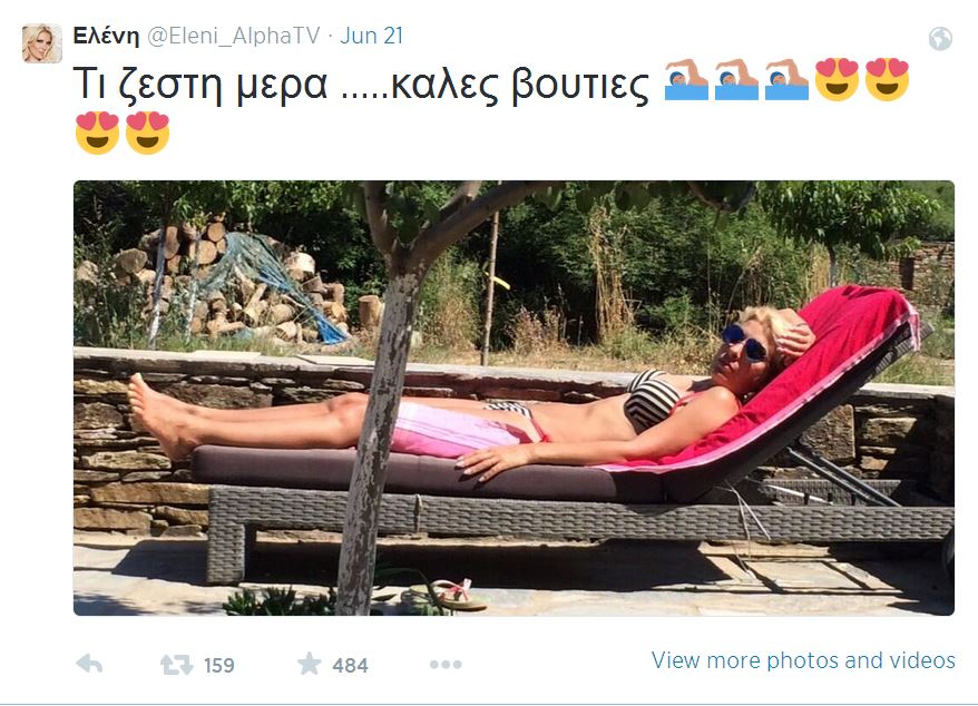 H ίδια ανέβασε αυτή τη φωτογραφία στο twitter γράφοντας “Τι ζεστή μέρα… καλές βουτιές”
