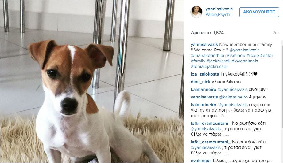 Η οικογένεια απέκτησε σκυλάκι που του έδωσαν το όνομα Roxie, όπως ενημέρωσε ο ηθοποιός μέσω του προσωπικού του λογαριασμού στο Instagram.