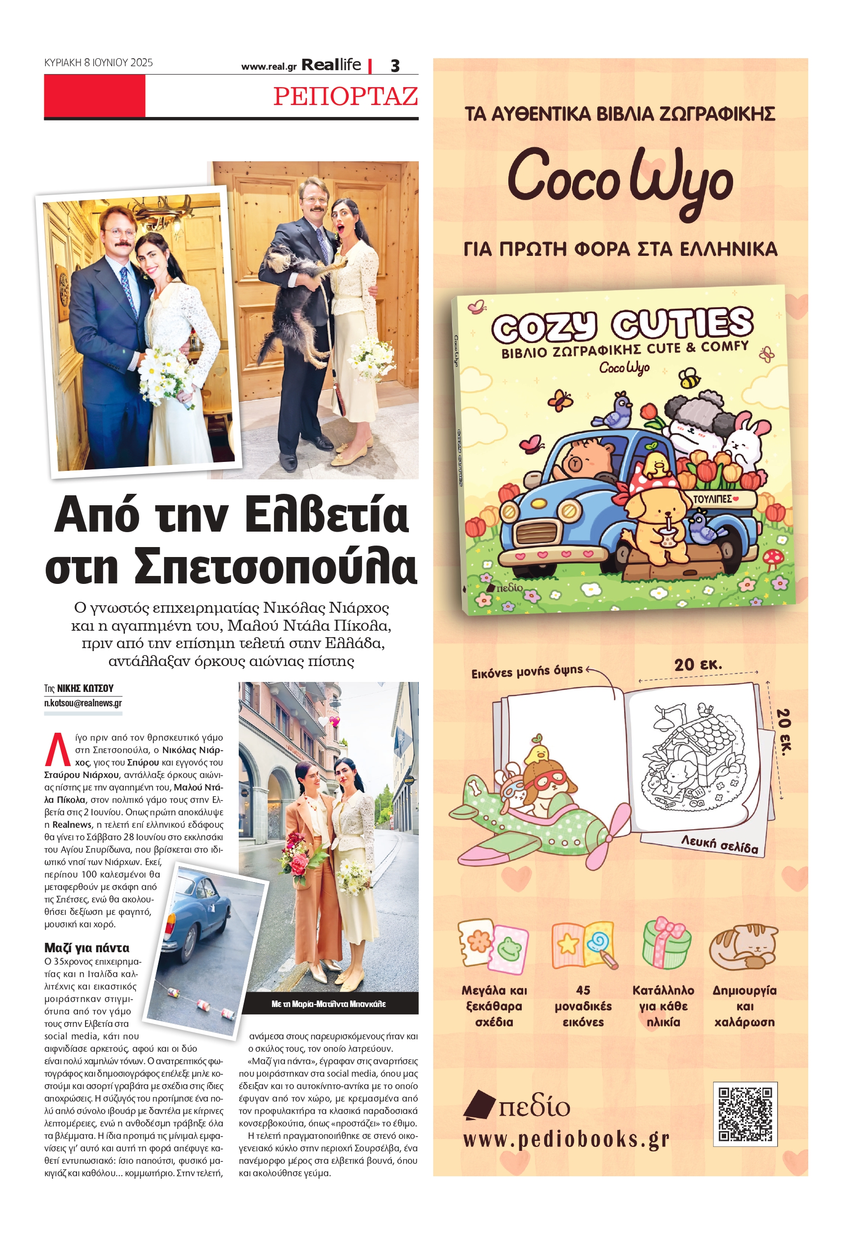 Λίγο πριν από τον θρησκευτικό γάμο στη Σπετσοπούλα, ο Νικόλας Νιάρχος, γιος του Σπύρου και εγγονός του Σταύρου Νιάρχου, αντάλλαξε όρκους αιώνιας πίστης με την αγαπημένη του, Μαλού Ντάλα Πίκολα, στον πολιτικό γάμο τους στην Ελβετία στις 2 Ιουνίου.