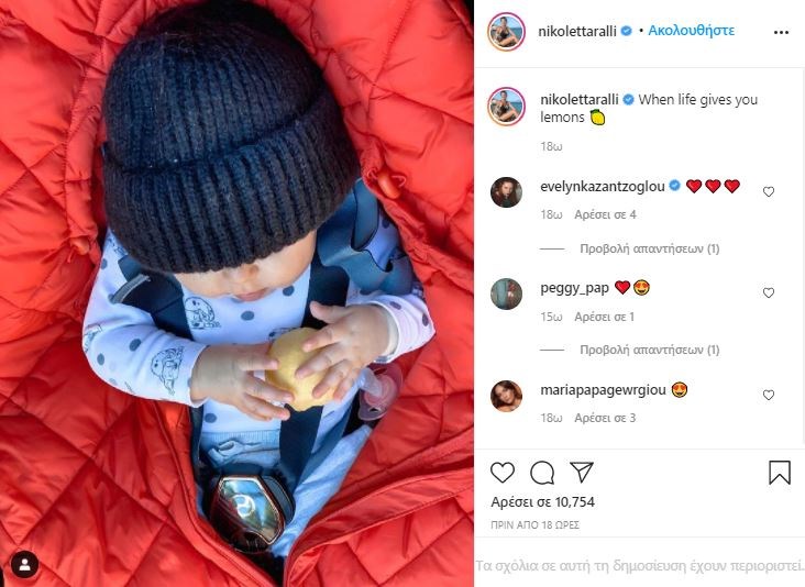 Η Νικολέττα Ράλλη ανέβασε στον προσωπικό λογαριασμό της στο Instagram μία φωτογραφία της κόρης της που κρατά ένα λεμόνι και έγραψε: “When life gives you lemons ?” δηλαδή, “Όταν η ζωή σου δίνει λεμόνια”. Όπως ήταν φυσικό τα likes και τα σχόλια έπεσαν “βροχή”.