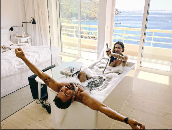 Και οι δύο, δημοσίευσαν την παρακάτω φωτογραφία στον προσωπικό τους λογαριασμό στο Instagram στην οποία απεικονίζονται μέσα στη μπανιέρα του ξενοδοχείου που διαμένουν.