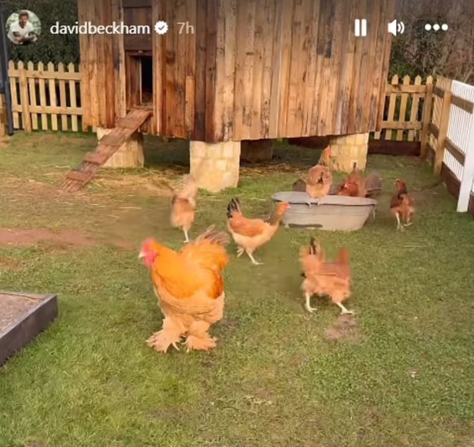 Αργότερα μέσα στην ημέρα, ο Ντέιβιντ έδειξε τα νέα του κοτόπουλα και το κοτέτσι που του είχε χαρίσει η Βικτώρια την ημέρα των Χριστουγέννων. Ο πρώην αθλητής μαγνητοσκόπησε τις κότες καθώς περπατούσε στο κοτέτσι ενώ κουνούσε έναν κουβά με τροφή.