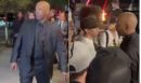 Ο εμφανώς ενοχλημένος ηθοποιός πήγε να περπατήσει προς τα μέσα, αλλά στη συνέχεια γύρισε και απευθύνθηκε σε έναν θαυμαστή στο πλήθος.