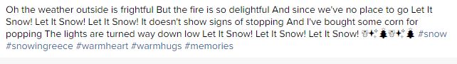 Η Ευγενία Μανωλίδου ανέβασε τη φωτογραφία στο Instagram γράφοντας στη λεζάντα στίχους από το τραγούδι του Φρανκ Σινάτρα «Let it snow».