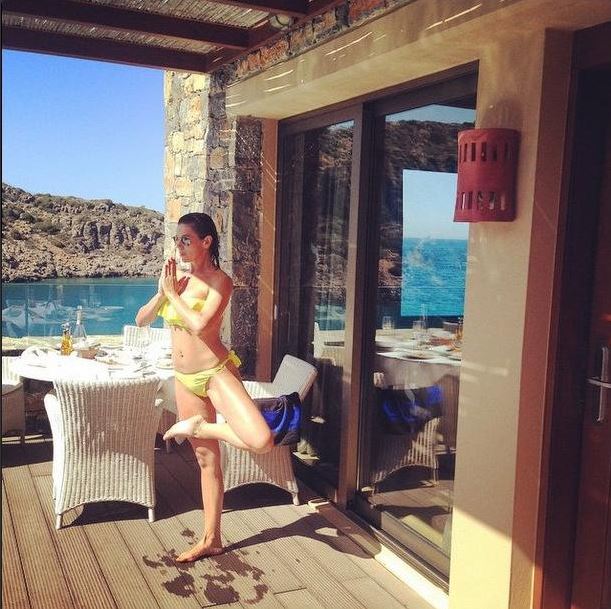 Ενώ ο κοινοβουλευτικός εκπρόσωπος της ΝΔ συμμετέχει σε κομματική εκδήλωση στο Λασίθι, η σύζυγός του χαλαρώνει με γιόγκα, σε πολυτελές ξενοδοχείο. Η Ευγενία Μανωλίδου ανέβασε στο Instagram μία φωτογραφία της με κίντρινο μαγιό, όπου κάνει γιόγκα.
