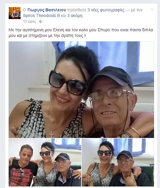 Χαρούμενος, ο γνωστός ηθοποιός ανέβασε στο Facebook της φωτογραφίες, αναφέροντας: “Με την αγαπημένη μου Ελένη και τον καλό μου Σπύρο που είναι πάντα διπλό μου και με στηρίζουν με την αγάπη τους!”.