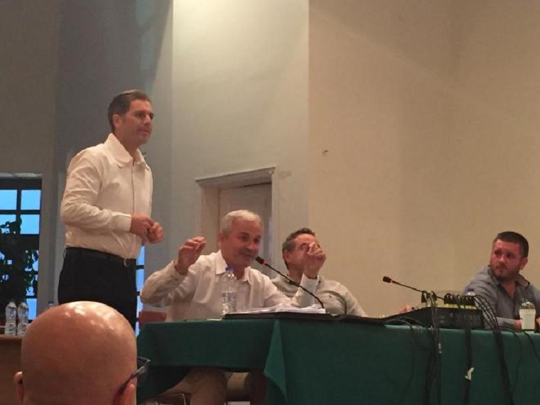 Ο λόγος ήταν ότι σε διπλανό χώρο, στο υπαίθριο θέατρο Γ. Παππάς, το κοινό παρακολουθούσε την παράσταση «Ράφτης Κυριών», όπου πρωταγωνιστεί ο γνωστός ηθοποιός και οι φωνές από το δημοτικό συμβούλιο ενοχλούσαν τους θεατές και τους ηθοποιούς.