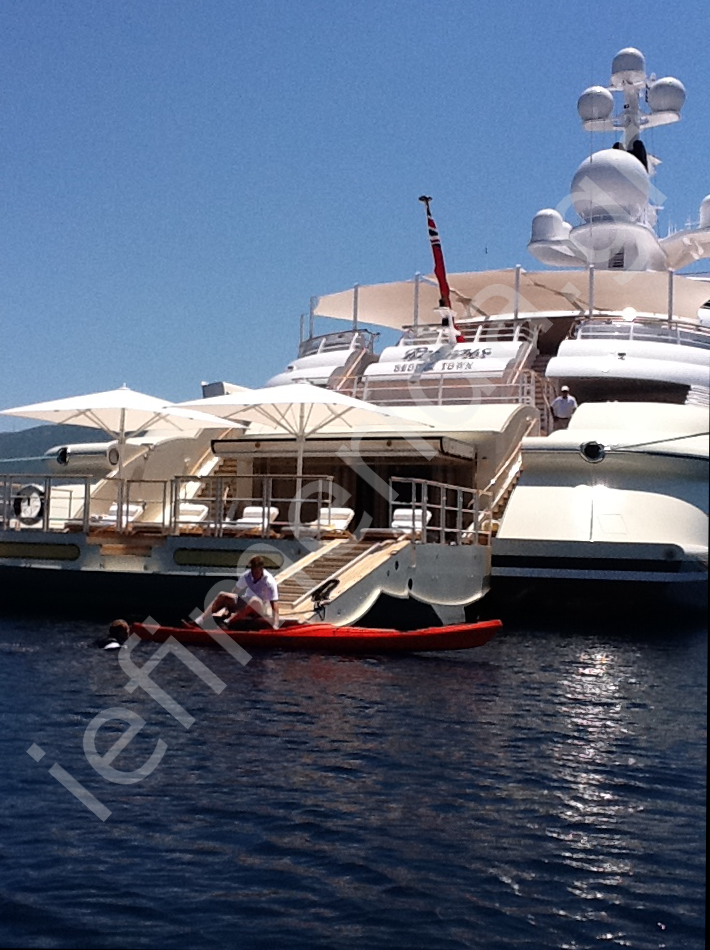Η 170 μέτρων θαλαμηγός, μεταξύ άλλων διαθέτει: ελικοδρόμια, πισίνες, εκτοξευτήρες πυραύλων, μικρά υποβρύχια, αλεξίσφαιρα τζάμια, αλλά και ασπίδες τεχνολογίας laser για τα αδιάκριτα βλέμματα…