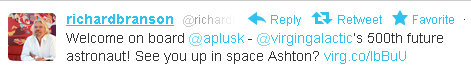 Ο Βρετανός επιχειρηματίας Richard Branson αποκάλυψε τα…μελλοντικά διαστημικά σχέδια του Ashton Kutcher στο twitter του.