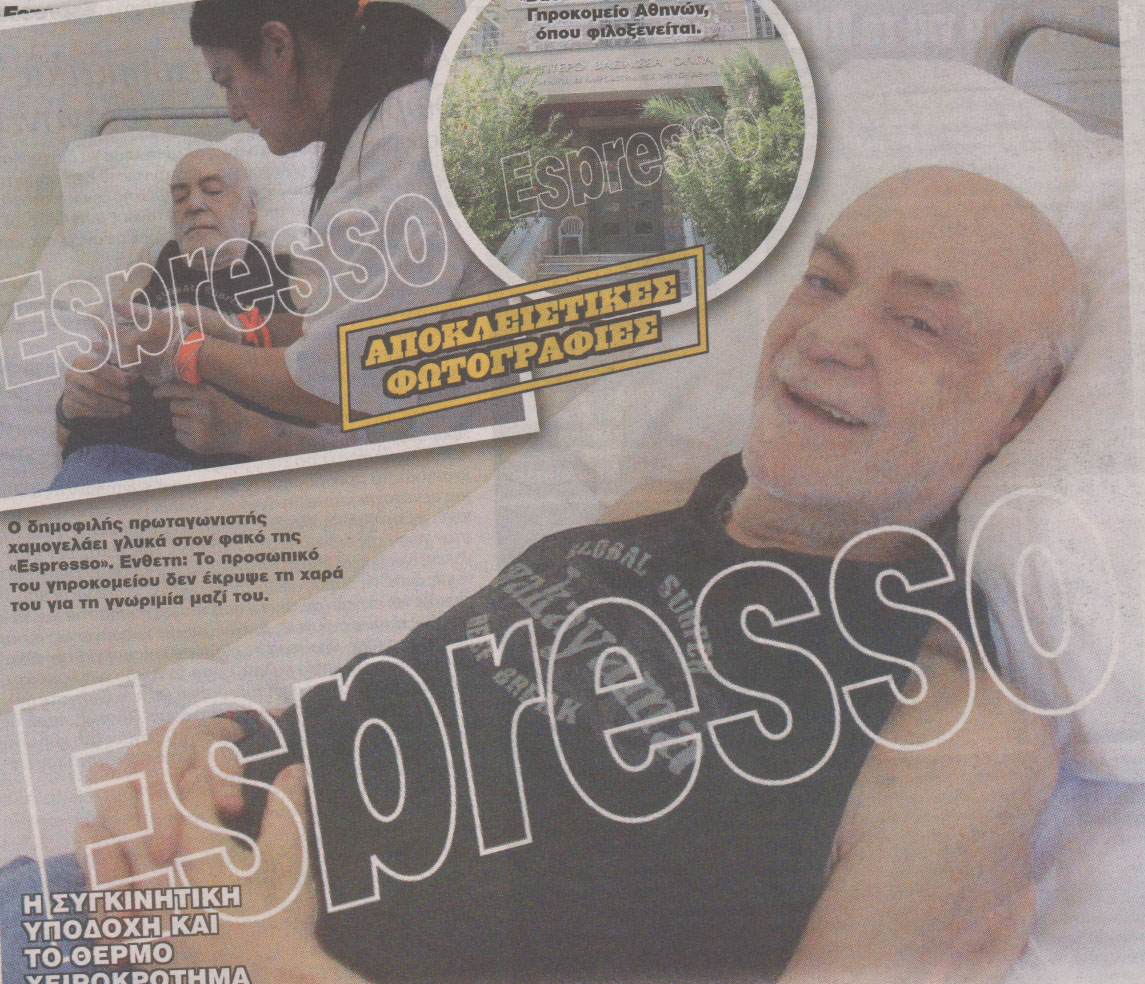 Μια επέμβαση της Μαρίας, της αγαπημένης του συζύγου, στάθηκε αφομή για να μεταφερθεί στο Γηροκομείο Αθηνών, ο γνωστός ηθοποιός Ανδρέας Μπάρκουλης.Οι τρόφιμοι του κτιρίου “Βασίλισσα Όλγα” του επέφύλαξαν θερμή υποδοχή. Ο Ανδρέας Μπάρκουλης μεταφέρθηκε από το νοσοκομείο “Αγία Όλγα” με ασθενοφόρο στο γηροκομείο.Η εφημερίδα “Espresso” δημοσιεύει σήμερα, φωτογραφίες του γνωστού ηθοποιού, από τις πρώτες του ώρες στο γηροκομείο.
