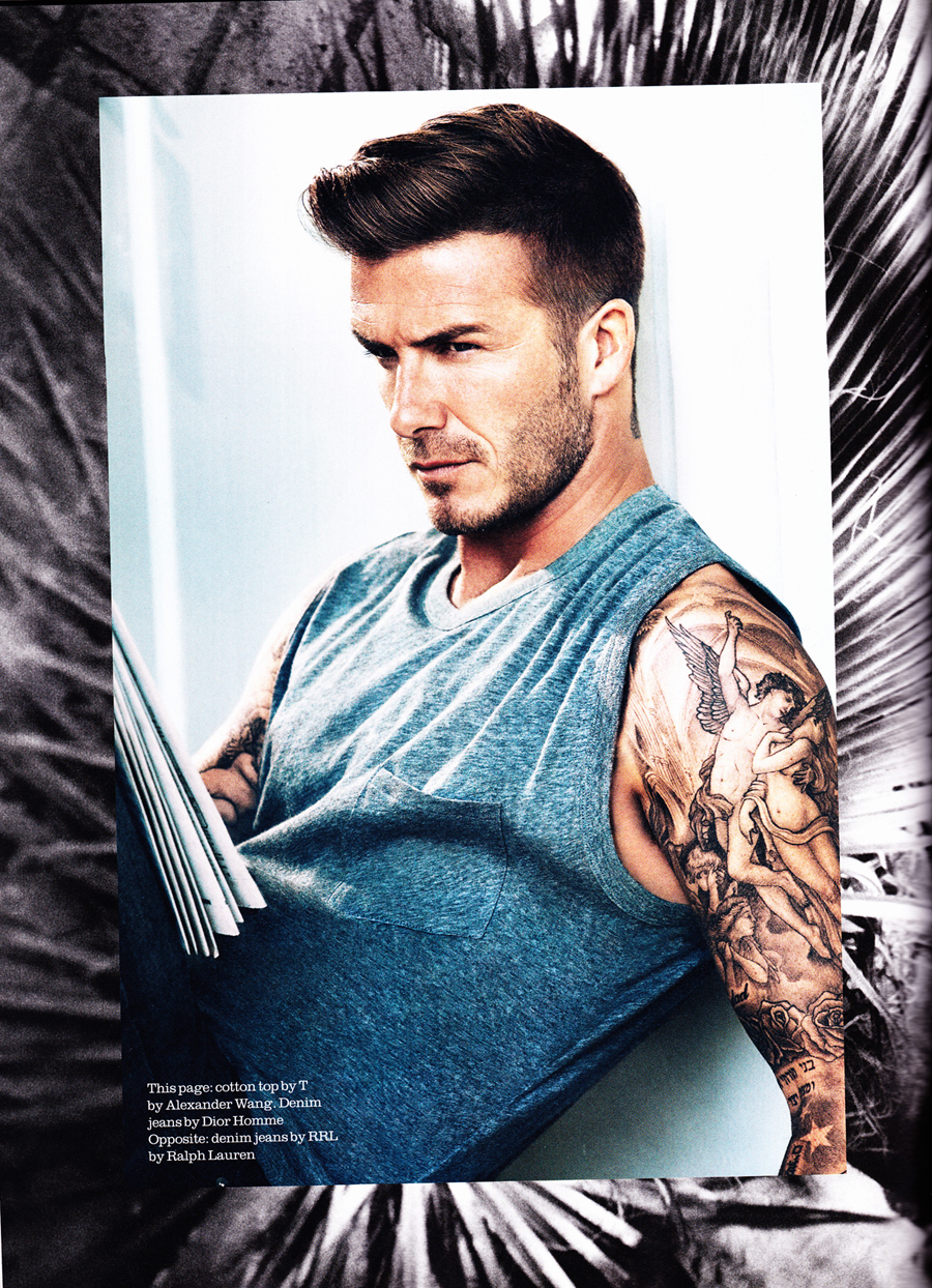 Κατά τα άλλα, επιμένει, έχει μια κανονική, ¨”μάλλον βαρετή”¨ζωή. Σηκώνεται κάθε μέρα στις επτά παρά τέταρτο. Το μωρό ξυπνάει στις επτά, τα αγόρια του στις επτά και τέταρτο. Ντύνονται και παίρνουν πρωινό – το ετοιμάζει ο ίδιος. ‘Οχι, δεν τρώνε όλοι τα πάντα, ο Brooklyn προτιμάει κρουασάν με μαρμελάδα, ο Romeo θέλει φρούτα, ο μικρός, ο Cruz, ψωμί με φουντουκόπαστα. Ο David τρώει συνήθως ό,τι περισσέψει – σπάνια έχει χρόνο να φτιάξει ένα κανονικό πρωινό για τον εαυτό του.”Μετά πηγαίνω τα αγόρια στο σχολείο – όποιον δεν προλάβω να πετάξω το πρωί, κανονίζω να τον πάρω το μεσημέρι – και από κει πάω στην προπόνηση. Προπονούμαι, τρώω ένα ελαφρύ γεύμα, μετά έρχομαι σπίτι, τρώω ακόμα λίγο και τρέχω να πάρω τα παιδιά από το σχολείο. Ε, εντάξει είναι λίγο βαρετά. Αυτό όμως δεν κάνει ο περισσότερος κόσμος;”Αυτό κάνει πάντως εκείνος και η Victoria – αν και oι κακές γλώσσες λένε, πως το ζευγάρι ασχολείται κυρίως με το κυνηγάει την επιτυχία. “Δεν είναι αλήθεια αυτό. Ποτέ δεν κυνήγησα τα χρήματα, τη φήμη. Ποτέ δεν με ενδιέφεραν και δεν με ενδιαφέρουν ούτε τώρα. Τίποτα απ’όλα αυτά δεν με ενθουσιάζει…” Η Victoria όμως – για την οποία μιλάει σχεδόν με δέος- είναι σίγουρα ένα από τα “θέματα” που τον κάνουν να λάμπει : “Δουλεύει σκληρά, πολύ πιο σκληρά απ’οποιονδήποτε έχω συναντήσει. Έχει τεράστια επιτυχία, αλλά δούλεψε πολύ σκληρά γι’αυτό. Και είναι καταπληκτική μαμά. Δίνει πάντα προτεραιότητα στα παιδιά, όσο απασχολημένη κι αν είναι, κι αυτό είναι ένα από τα πράγματα που αγαπάω σε κείνη. Δηλαδή, είναι πολλά τα πράγματα που αγαπώ, αλλά το να είναι καλή μαμά, είναι μια ιδιότητα πολύ σέξι και πολύ αξιαγάπητη”Ακριβώς αυτό που είχαμε κι εμείς στο μυαλό μας κοιτάζοντας αυτές τις φωτογραφίες David….