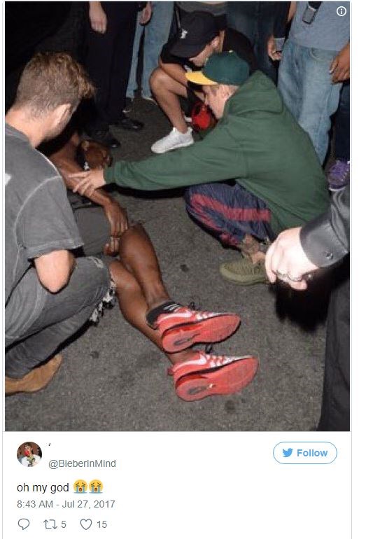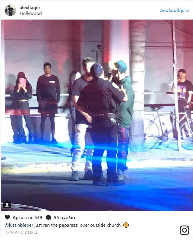 Το περιστατικό συνέβη λίγα λεπτά, αφότου ο 23χρονος σταρ είχε βγει από την Εκκλησία Hillsong.