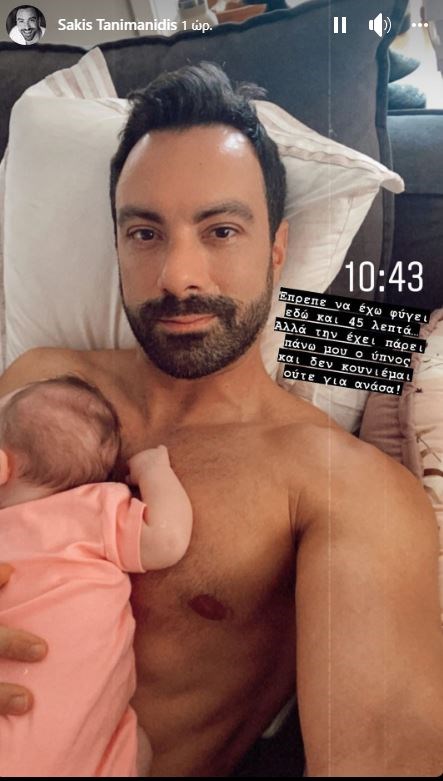 Τον νέο του ρόλο ως μπαμπάς απολαμβάνει ο Σάκης Τανιμανίδης. Οι δίδυμες κόρες του, καρπός του έρωτά του με την Χριστίνα Μπόμπα, έχουν γίνει η απόλυτη προτεραιότητά του. Όπως φαίνεται από τις αναρτήσεις του στα social media, ο παρουσιαστής συμμετέχει ενεργά στην ανατροφή των μωρών. Το πρωί δημοσίευσε μάλιστα μία φωτογραφία στα social media, στην οποία φαίνεται η μπέμπα να κοιμάται επάνω του. Προκειμένου να μην την ξυπνήσει, δεν κουνιέται ούτε για να πάρει… ανάσα, όπως αποκάλυψε με χιούμορ ο Σάκης Τανιμανίδης. Κι όλα αυτά, παρά το γεγονός ότι έχει καθυστερήσει πολύ να φύγει από το σπίτι για τις επαγγελματικές του υποχρεώσεις.