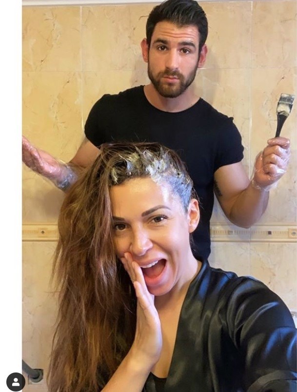 Η τραγουδίστρια Ελένη Χατζίδου δημοσίευσε στον προσωπικό λογαριασμό της στο Instagram μία φωτογραφία στην οποία ο σύζυγός της, Ετεοκλής Παύλου, της βάφει τα μαλλιά.