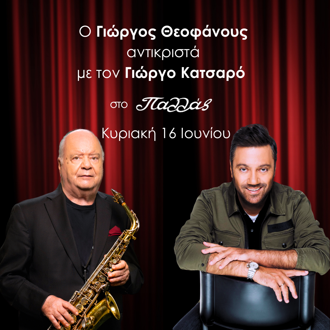 Σήμερα, 34 χρόνια μετά την πρώτη τους γνωριμία, ο Γιώργος Θεοφάνους ΑΝΤΙΚΡΙΣΤΑ στον Γιώργο Κατσαρό, το πιάνο πλάι στο σαξόφωνο, πλαισιωμένοι απο μια ορχήστρα καταξιωμένων μουσικών συναντιόνται και πάλι για να μας χαρίσουν δυο διαχρονικές μουσικές βραδιές.