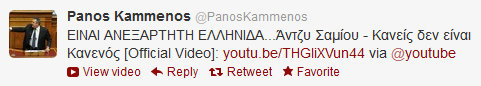Tι ενώνει τον Πρόεδρο των Ανεξάρτητων Ελλήνων, Πάνο Καμμένο και την Άντζυ Σαμίου; Μια αφιέρωση που μάλλον κρύβει ένα…πολιτικό φλέρτ! Διαβάστε τι έγραψαν στο twitter τους…
