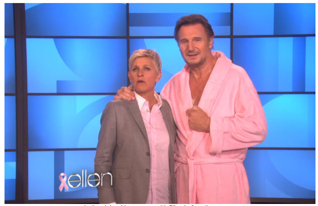 Ο 60χρονος ηθοποιός, Liam Neeson, δέχτηκε να εμφανιστεί μόνο με ένα ροζ εσώρουχο στην Αμερικανική εκπομπή της Ellen DeGeneres για να συγκεντρώσει λεφτά για ένα κέντρο έρευνας για τον καρκίνο του μαστού.