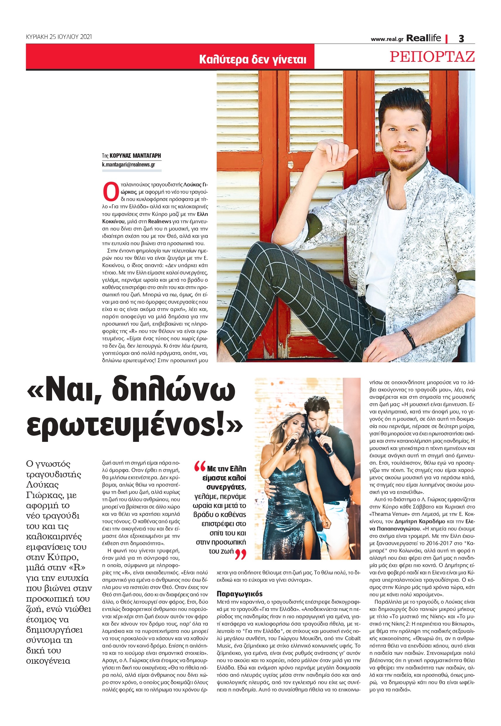 Ο ταλαντούχος τραγουδιστής Λούκας Γιώρκας, με αφορμή το νέο του τραγούδι που κυκλοφόρησε πρόσφατα με τίτλο «Για την Ελλάδα» αλλά και τις καλοκαιρινές του εμφανίσεις στην Κύπρο μαζί με την Έλλη Κοκκίνου, μιλά στη Realife για την έμπνευση που δίνει στη ζωή του η μουσική, για την ιδιαίτερη σχέση του με τον Θεό, αλλά και για την ευτυχία που βιώνει στα προσωπικά του.