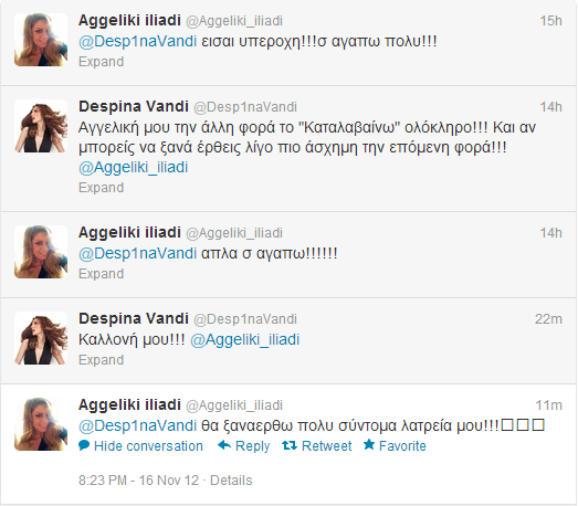 Η καυτή τραγουδίστρια ξενύχτησε χθες, που είχε ρεπό, και πέρασε τόσο καλά με το συγκεκριμένο πρόσωπο που δεν δίστασε να γράψει ενθουσιασμένη στο twitter: “Θα ξαναέρθω πολύ σύντομα λατρεία μου”! Μιλάμε για ένα πολύ μεγάλο “έρωτα”, όπως φαίνεται κι από το διάλογό τους…