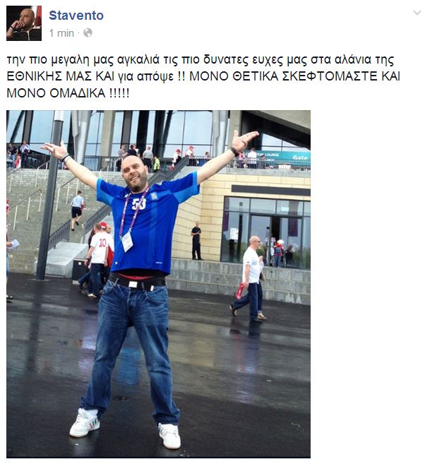 Ο γνωστός τραγουδιστής, ευχήθηκε καλή επιτυχία στην Εθνική μας ομάδα από τον προσωπικό του λογαριασμό στο facebook ποστάροντας μια φωτογραφία του, όπου φορά την μπλε φανέλα της Ελλάδας.