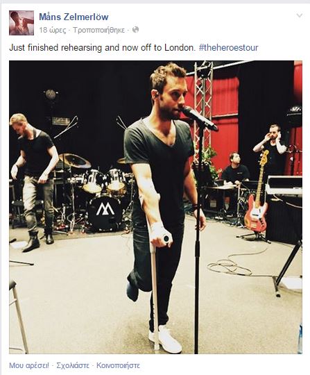Ο τραγουδιστής ανέβασε στο facebook μια φωτογραφία από την πρόβα που έκανε και τον έδειχνε να στηρίζεται σε μια πατερίτσα.