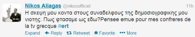 Τις τελευταίες εξελίξεις με το “λουκέτο” στην ΕΡΤ, σχολιάζει μέσω του προσωπικού του λογαριασμού στο twitter και ο Νίκος Αλιάγας.