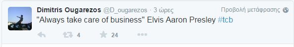 Λίγη ώρα αργότερα έγραψε πάλι μέσω twitter: «Πάντα να φροντίζεις τη δουλειά σου».