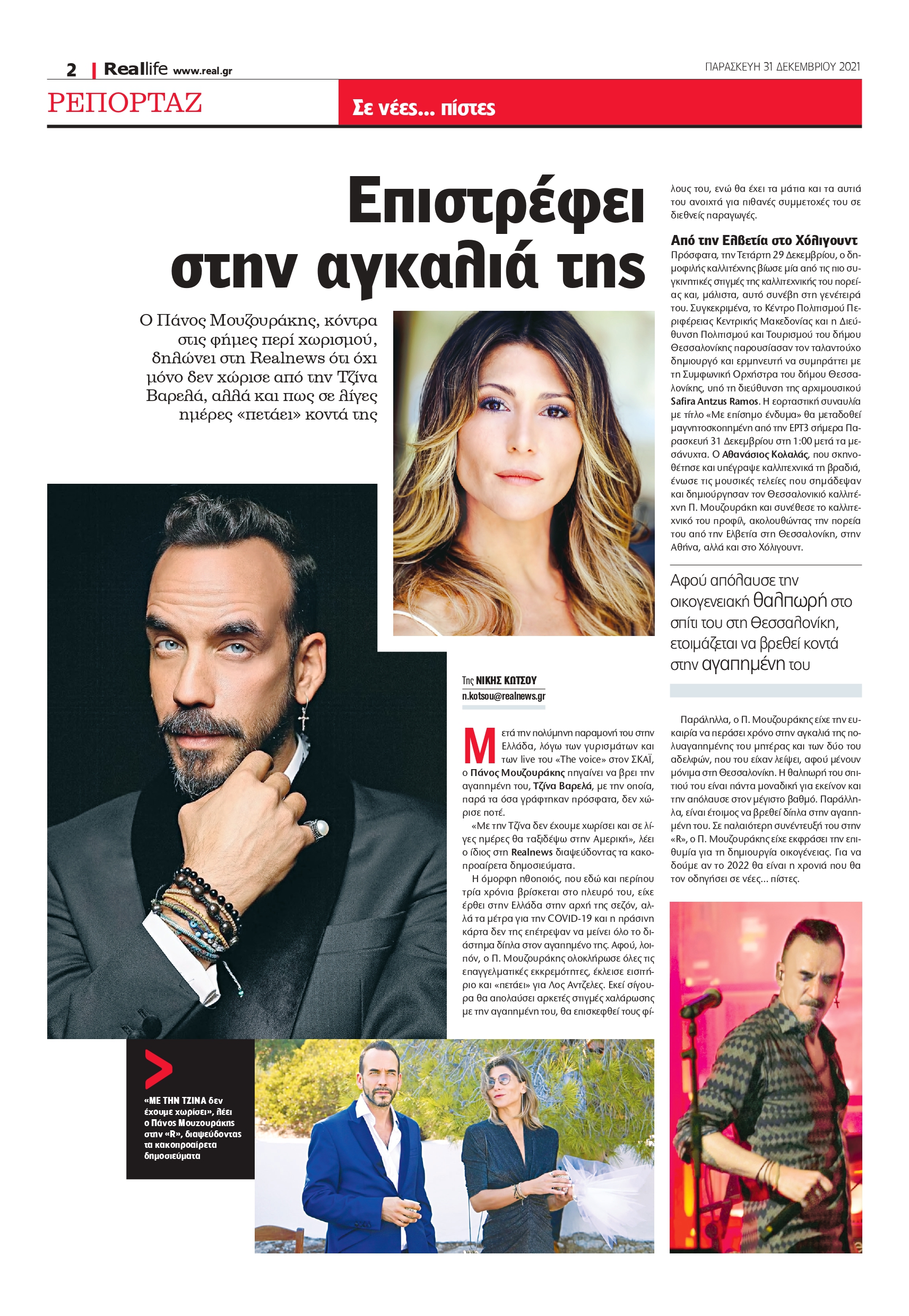 Ο Πάνος Μουζουράκης, κόντρα στις φήμες περί χωρισμού, δηλώνει στη Realnews ότι όχι μόνο δεν χώρισε από την Τζίνα Βαρελά, αλλά και πως σε λίγες ημέρες «πετάει» κοντά της.
