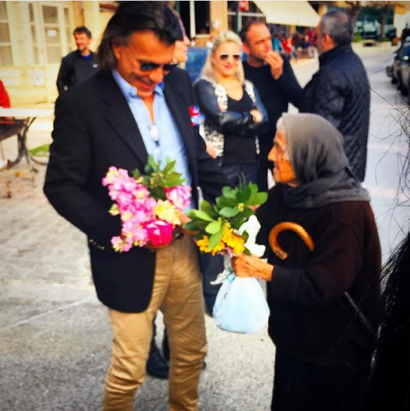Ο Ηλίας Ψινάκης ανέβασε στον προσωπικό του λογαριασμό στο Instagram μια φωτογραφία στην οποία απεικονίζεται μια ηλικιωμένη κυρία να του προσφέρει λουλούδια.