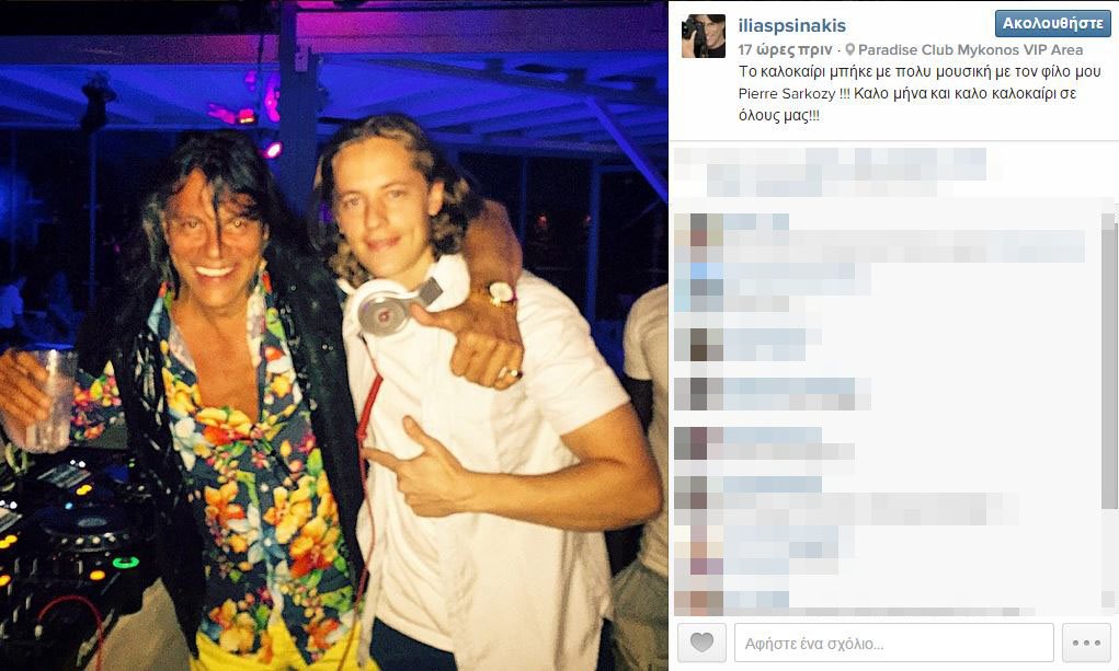 Ο Ηλίας Ψινάκης με καλοκαιρινή διάθεση, φορώντας ένα κίτρινο παντελόνι και floral πουκάμισο, απαθανατίστηκε μαζί με το γιο του Σαρκοζί, ανεβάζοντας τη φωτογραφία στον προσωπικό του λογαριασμό στο Instagram, ενώ έγραψε: