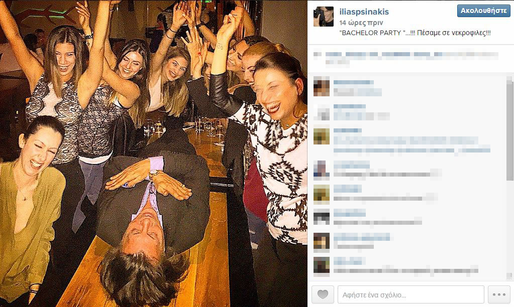 Ο κ.Ψινάκης βρισκόταν σε κάποιο μπάτσελορ πάρτι, από ότι έγραψε και ο ίδιος, σχολιάζοντας με χιούμορ «”BACHELOR PARTY “…!!! Πέσαμε σε νεκροφιλες!!!».