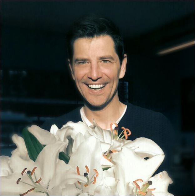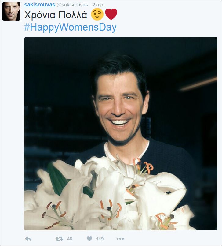 Κρατώντας μια ανθοδέσμη με λευκά λίλιουμ και με ένα φωτεινό χαμόγελο, ο Έλληνας καλλιτέχνης με τις περισσότερες θαυμάστριες, έκανε το καλύτερο δώρο στις εορτάζουσες.