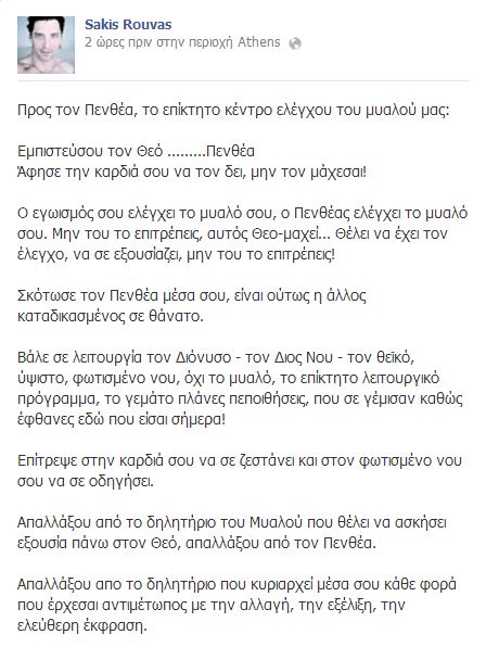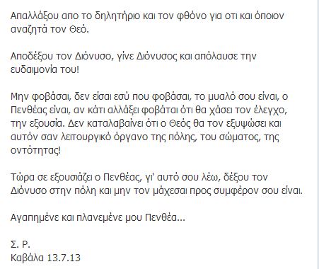 Ο Ρουβάς γράφει για τις “Βάκχες”