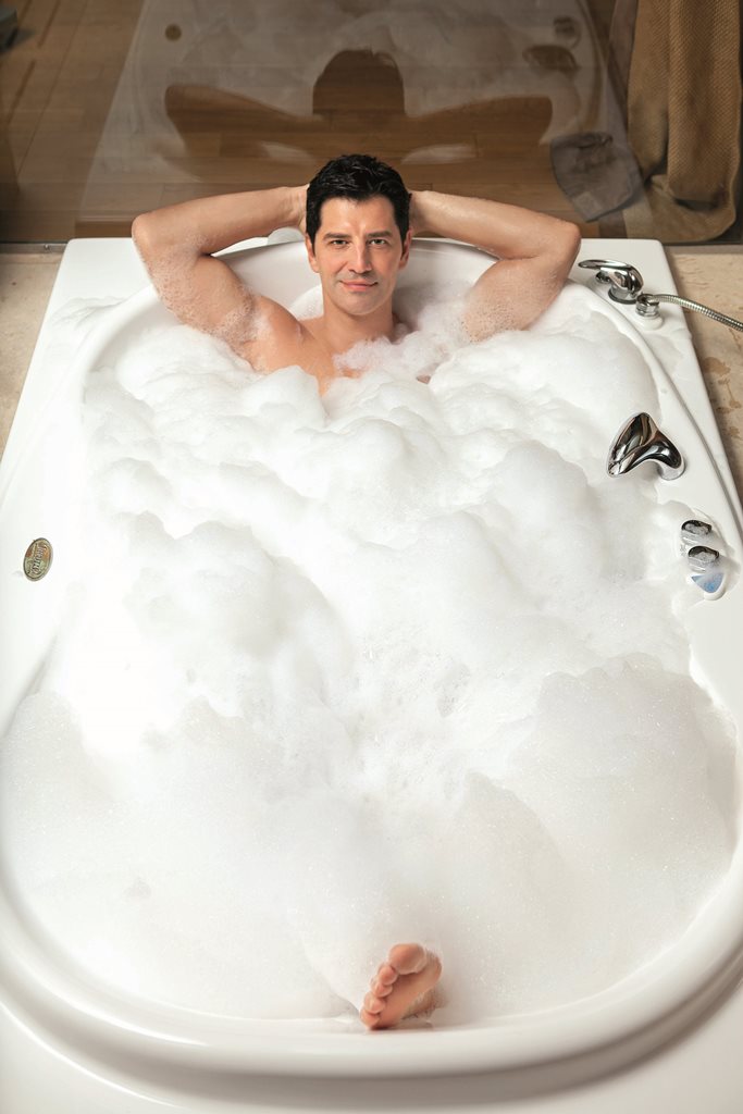 Ο Σάκης Ρουβάς πόζαρε μέσα από τη μπανιέρα του, χαμογελώντας στον φωτογραφικό φακό του περιοδικού “People”.