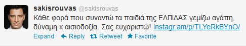Ο Σάκης Ρουβάς εδώ και χρόνια είναι δίπλα στα παιδιά του Συλλόγου “Ελπίδα”. Πριν από λίγο έγραψε στο twitter του: