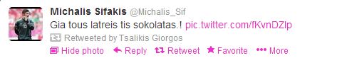 Ο διεθνής μας ποδοσφαιριστής, Μιχάλης Σηφάκης, έχει την τύχη να περιτριγυρίζεται από τη λαχταριστή βελγική σοκολάτα, αφού είναι κάτοικος Βελγίου.