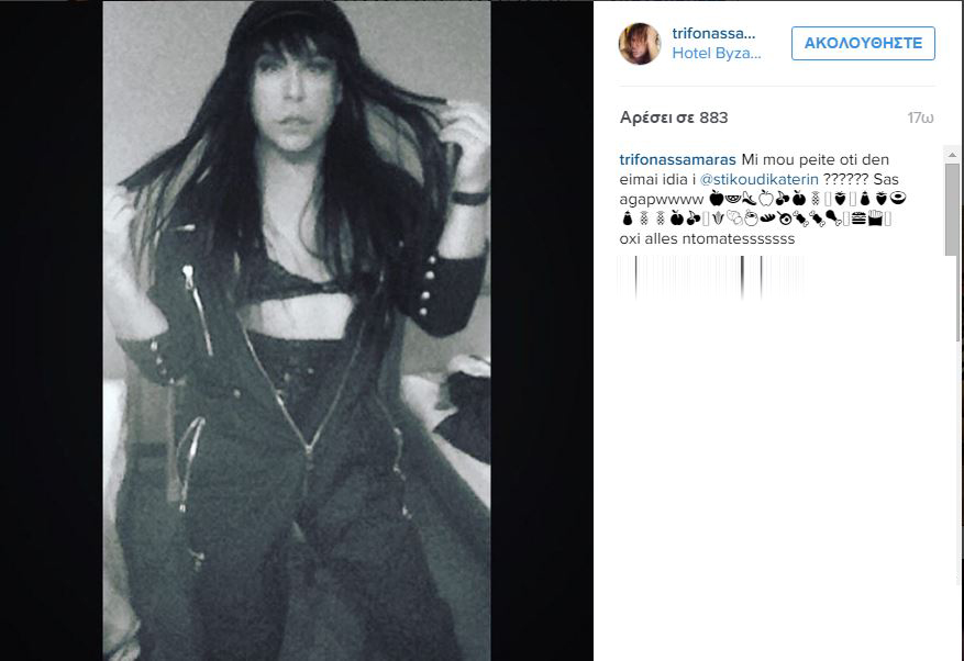 Ο διάσημος κομμωτής Τρύφωνας Σαμαράς πόσταρε δύο φωτογραφίες του στο instagram σχολιάζοντας ότι «ντύθηκε» Κατερίνα Στικούδη.