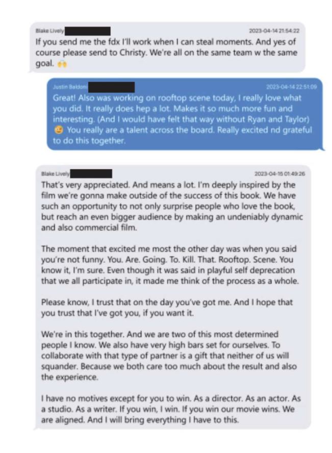 Μετά τη συνάντηση, ο Baldoni έστειλε μήνυμα στη Lively για τη κομβική «σκηνή της ταράτσας» από την ταινία, σύμφωνα με την καταγγελία, και φαινομενικά φαινόταν ανοιχτός στα σχόλια.