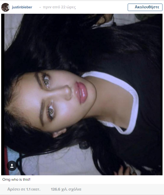 Ο Τζάστιν Μπίμπερ κατάφερε να κάνει τα μέσα κοινωνικής δικτύωσης να παραμιλούν, εξαιτίας μιας φωτογραφίας ενός πολύ όμορφου κοριτσιού που δημοσίευσε στο Instagram. Συγκεκριμένα, ο νεαρός τραγουδιστής δημοσίευσε την φωτογραφία του κοριτσιού στον λογαριασμό του, γράφοντας χαρακτηριστικά: « Θεέ μου ποιο είναι αυτό το κορίτσι;».
