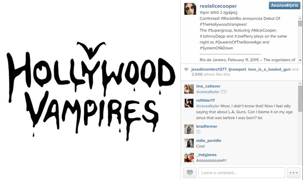 Την είδηση έκανε γνωστή ο Άλις Κούπερ μέσα από τη σελίδα του στο Instagram, ανήμερα του Αγίου Βαλεντίνου.