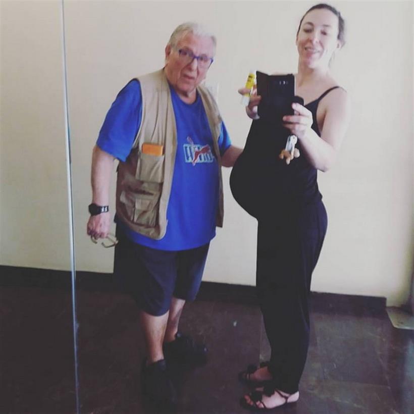 Η ίδια πόζαρε μαζί με τον Κώστα Βουτσά σχολίαζοντας με χιούμορ στη λεζάντα της ανάρτησής της: «Α, κοίτα! Εδώ φαίνεται καλά η κοιλίτσα μου, ας βγάλουμε φωτογραφία!».