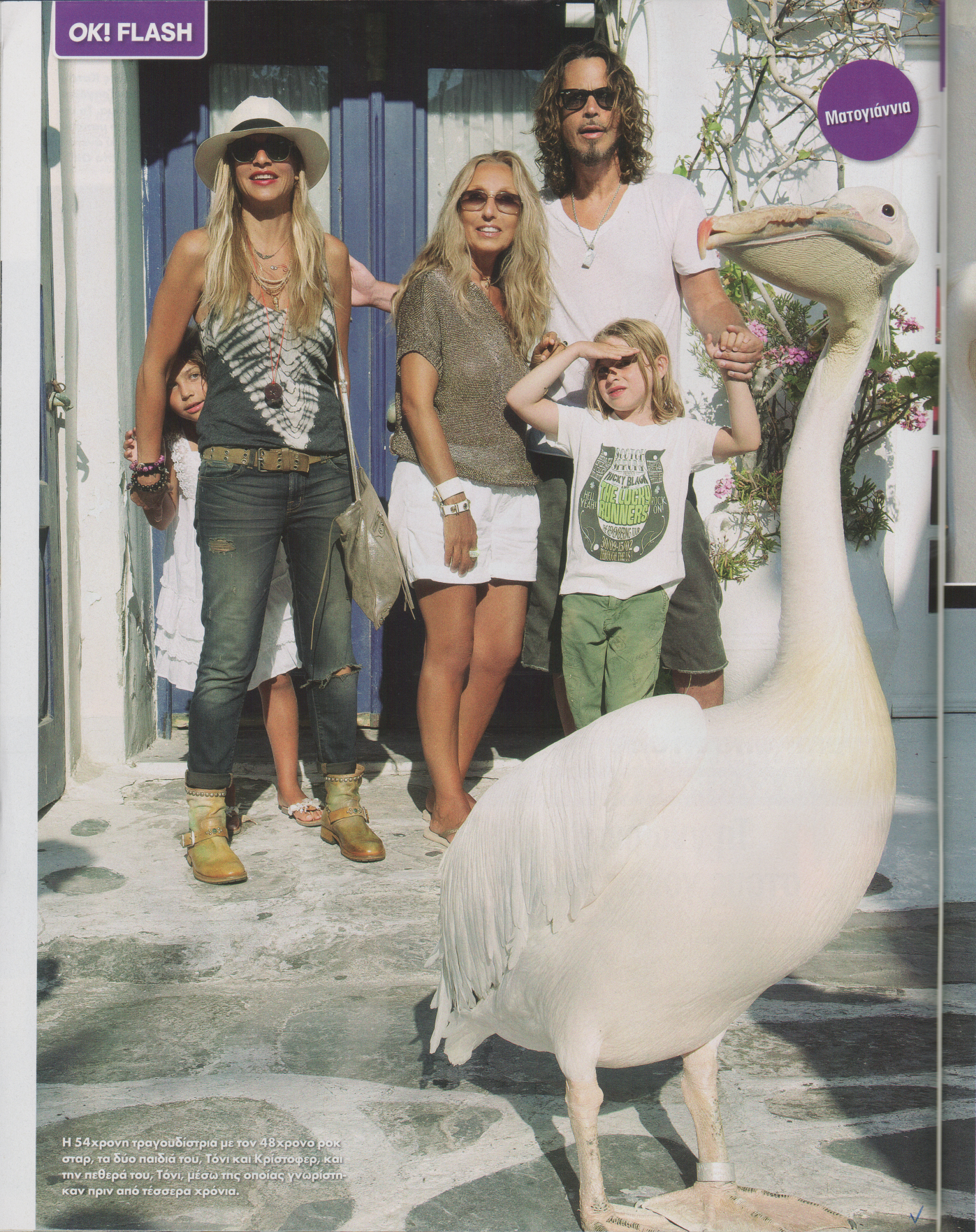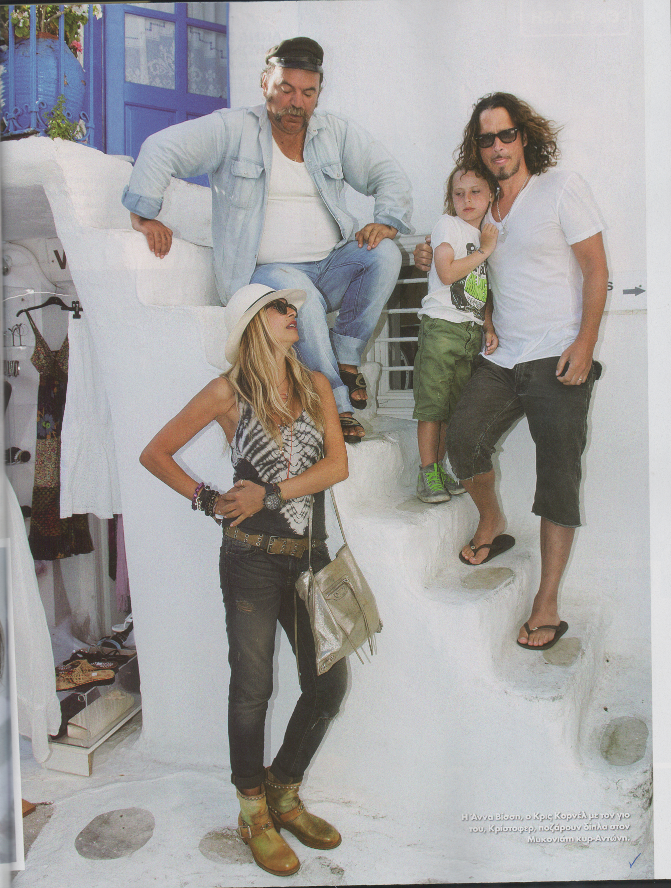 Στη Μύκονο έκαναν μαζί διακοπές ο 48χρονος frontman του συγκροτήματος Soundgarden και η τραγουδίστρια Άννα Βίσση. Ο Αμερικανός ροκ σταρ έχει στενή επαφή με την Ελλάδα λόγω της Ελληνίδας συζύγου του, Βίκυς Καραγιάννη. Το ζευγάρι βρέθηκε στο νησί των ανέμων μαζί με τα δυο παιδιά του, τον 6χρονο Κρίστοφερ-τον οποίο έχει βαφτίσει η Άννα Βίσση στο Λος Άντζελες- και την 8χρονη Τόνι. Ο φωτογραφικός φακός του ΟΚ τους αποθανάτισε να κάνουν βόλτες στη Χώρα του νησιού.