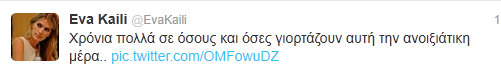 Η Εύα Καϊλή έδωσε τις ευχές της στους εορτάζοντες μέσω twitter…Tι έγραψε;